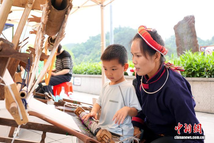 图为壮锦织娘正在教孩童织布。李源 摄
